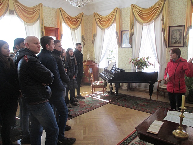 В воскресенье 26.03.2017 г. студенты группы 14ПФ1 вместе с куратором Тумановой Л.Н. приняли участие в экскурсионной поездке в Тарханы, где прошла половина всей короткой 27-летней жизни великого русского поэта М.Ю. Лермонтова. На территории Лермонтовского музея - заповедника «Тарханы» были посещены два экспозиционных комплекса.