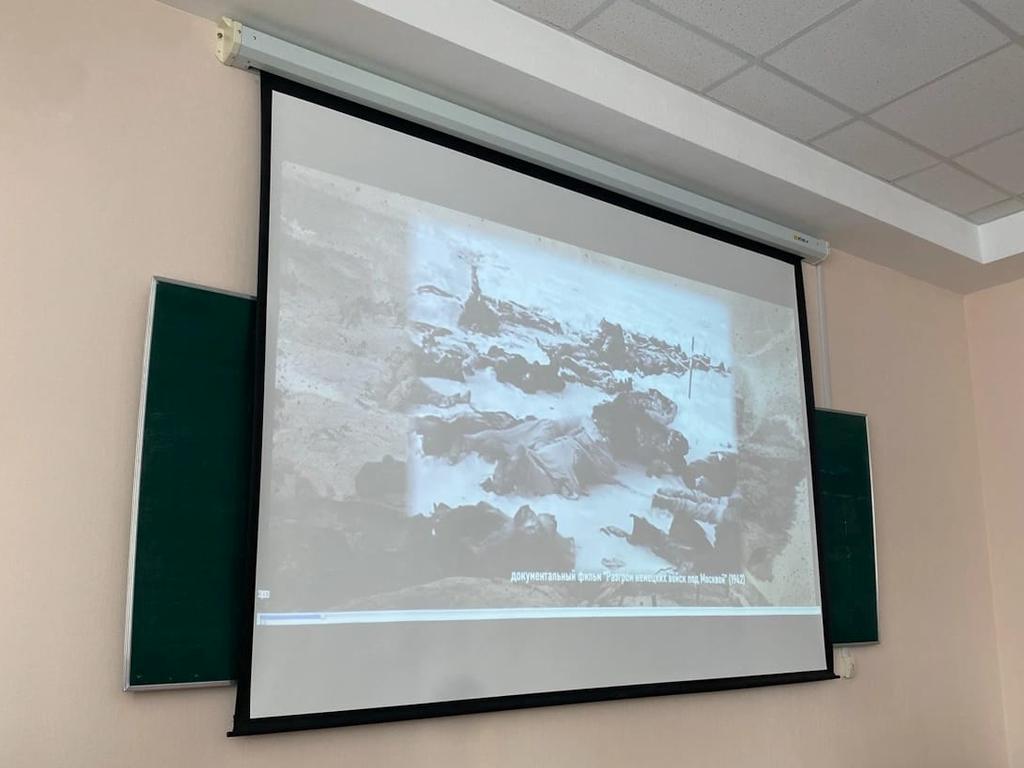 На куратором часе 3 февраля кураторами кафедры "Физика" Грозной Е.В. и Тумановой Л.Н. был организован тематический кинопоказ, посвященный битве за Сталинград. Ребята посмотрели хронику Сталинградской битвы, узнали о героизме и мужестве наших солдат, познакомились с историческими памятниками. Среди них мемориальный ансамбль «Героям Сталинградской битвы» на Мамаевом кургане, Дом Солдатской Славы (Дом Павлова) и другие.