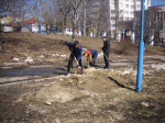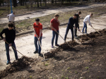 13.04.2016. Группа 15ПФ1, куратор Тертычная С.В. и группа 13ПФ1, куратор Костина Н.В. Благоустройство закрепленной за кафедрой территории.